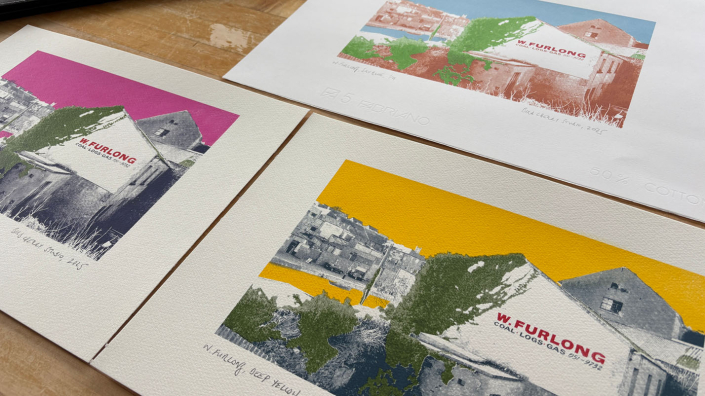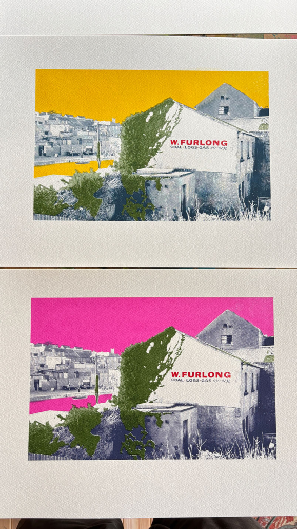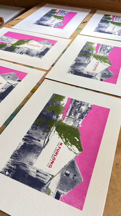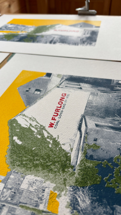 Our latest series of prints features the movie set sign W FURLONG, COAL LOGS GAS, from the movie Small Things Like These. The sign still remains on a wall in a yard by the north side of the river, on the North Quay in Wicklow Town.