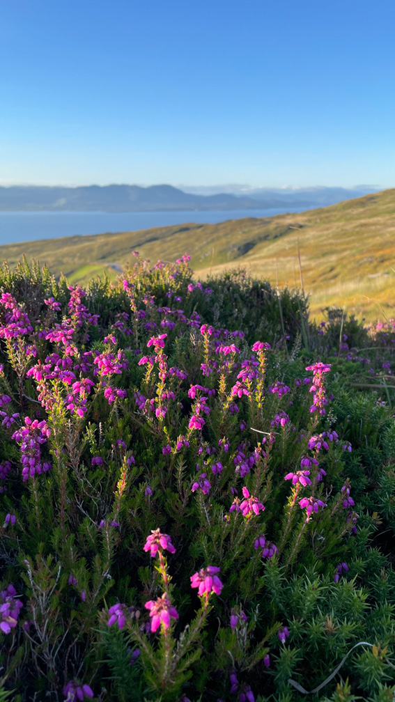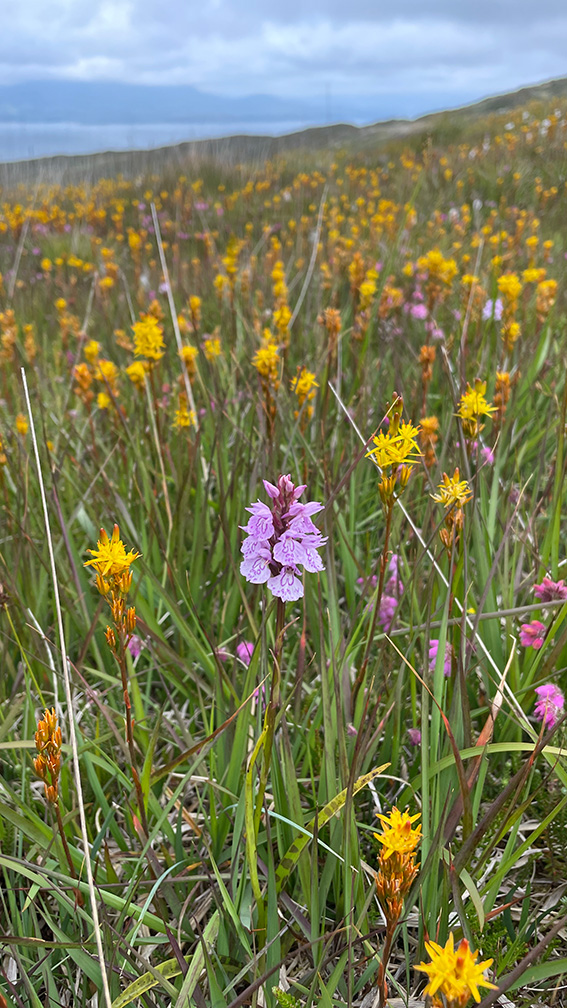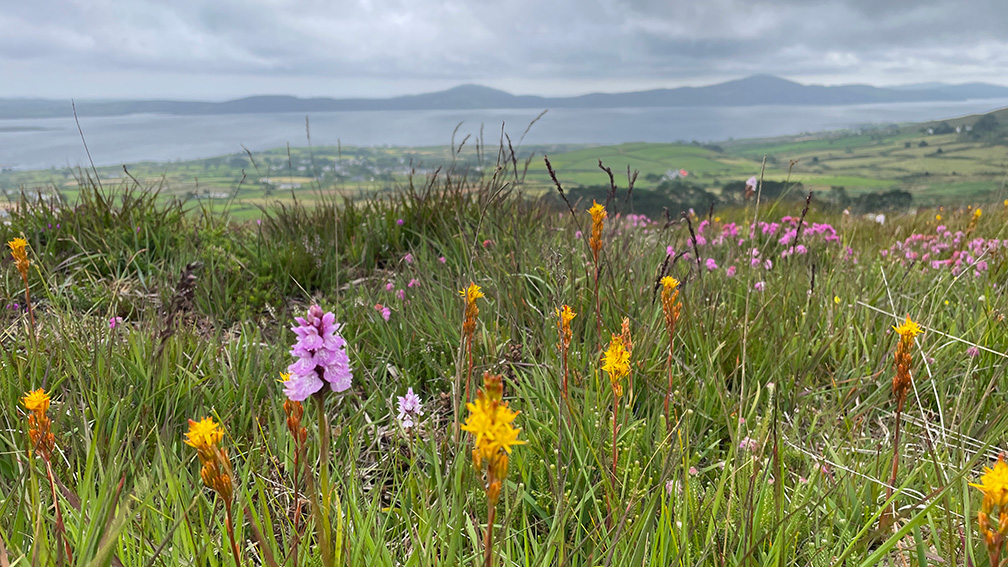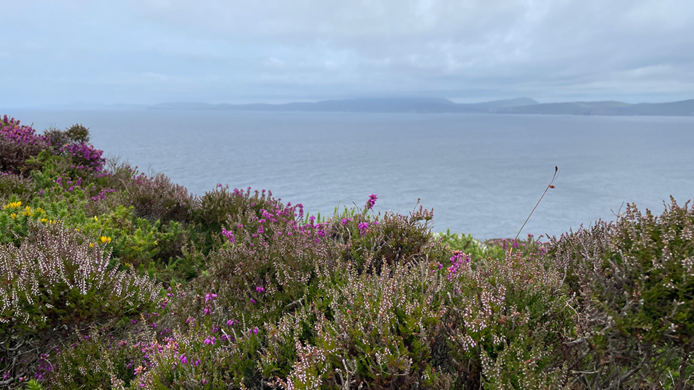 As shown in the galley, in the summer of 2024 we had a holiday on the Sheep’s Head Peninsula in County Cork. Jenny and I spent hours on the hills around Fionn mac Cumhaill’s Seat, exploring the flowers: orchids; the Bog Asphodel, Ling Heather, Bell Heather, Cross-Leaved Heath; Bog Cotton and more.