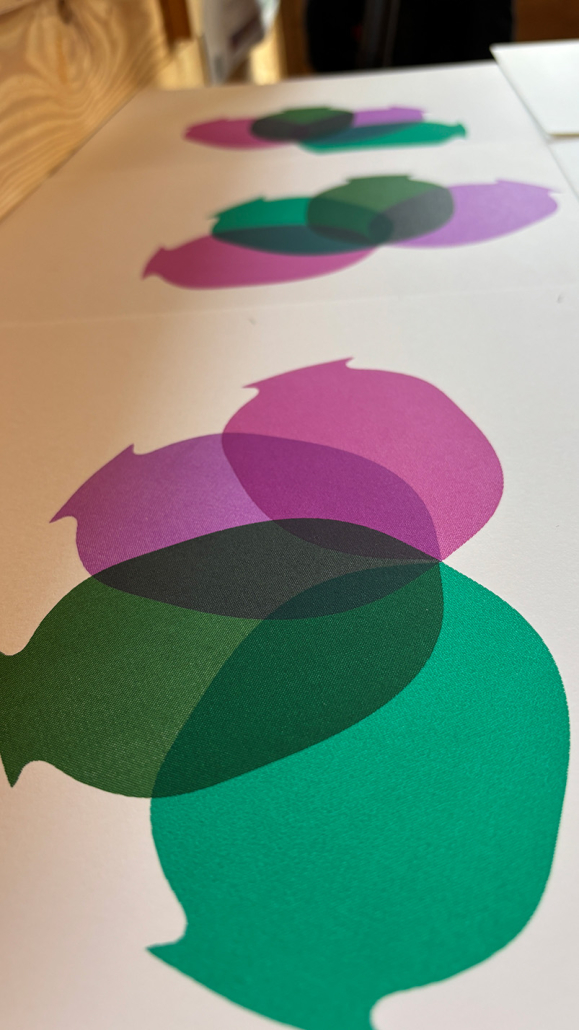 The print series is based on the bell shaped flowers of the Cross-leaved Heath, and in some of the prints the chacteristic leaves are featured. The colour palette of the main series is inspired by the wider flora (as listed above).