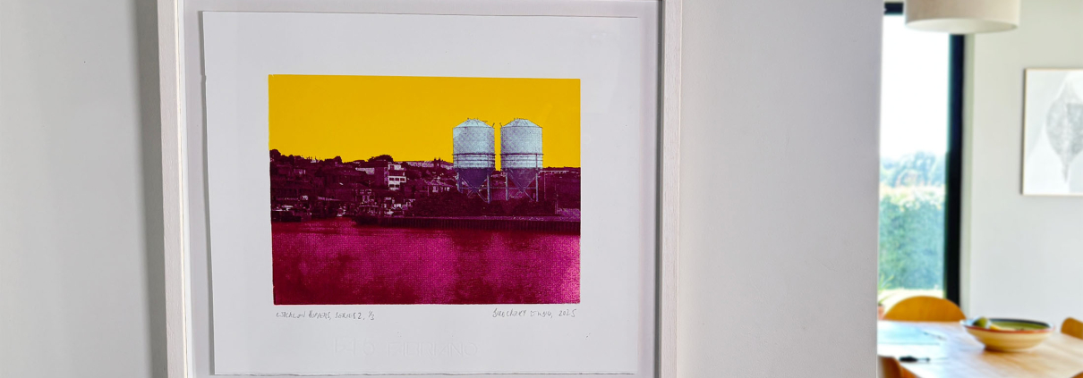 The Wicklow Hoppers, a series of prints that focus on the cement silos on the North Quay at Wicklow Harbour. These prints form part of a series that focuses on the industrial heritage of Wicklow Town.