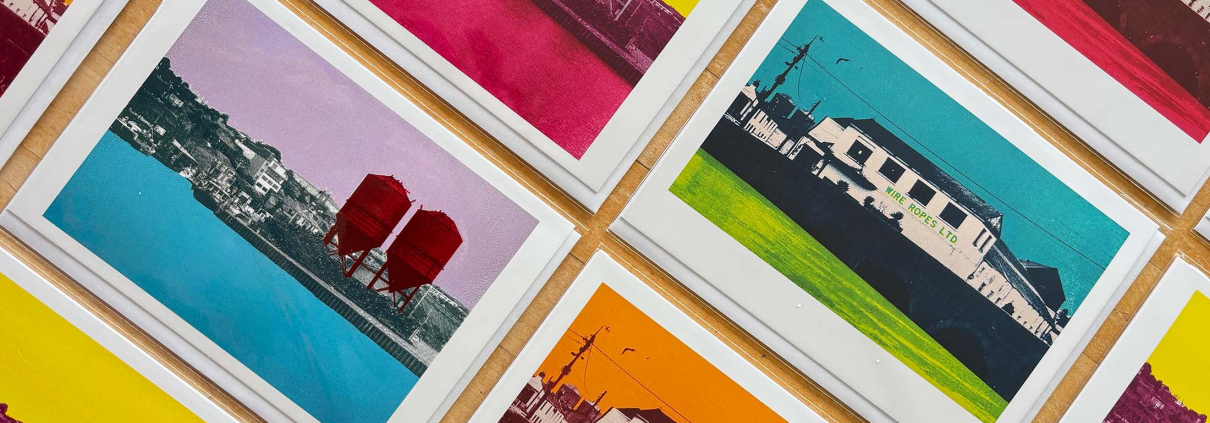 Our first set of greeting cards are in production, featuring the Wicklow series of screen prints: the Wire Ropes and the Wicklow Hoppers prints.